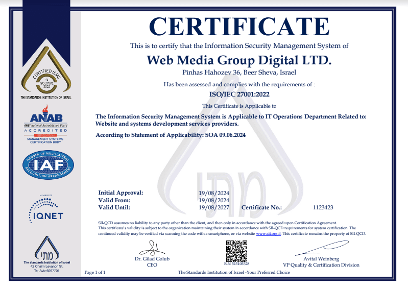 קבוצת WMG, שהוקמה בשנת 2007 מתמחה בפתרונות מותאמים אישית בתחום פיתוח ותחזוקת אתרים. עם מחויבות לאמינות, מקצועיות ושירות אישי, אנו מציעים מעטפת מקיפה המשלבת עיצוב, פיתוח ותחזוקה לאתרים ומערכות מורכבות.
